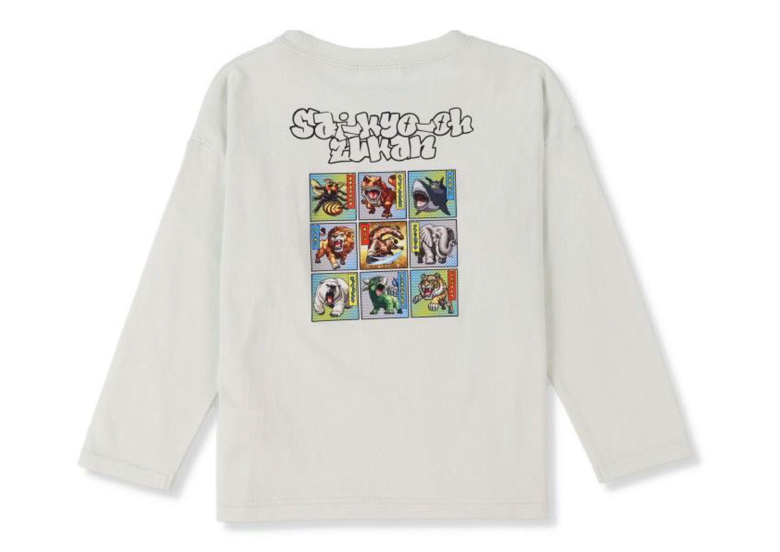 バースデイオンラインストアより、「最強王図鑑」の長袖Tシャツが発売!!迫力のあるティラノサウルス・ライオンのデザインやデフォルメシール風のデザインがかっこいい商品となっております!ぜひこの機会にゲットしてください☆